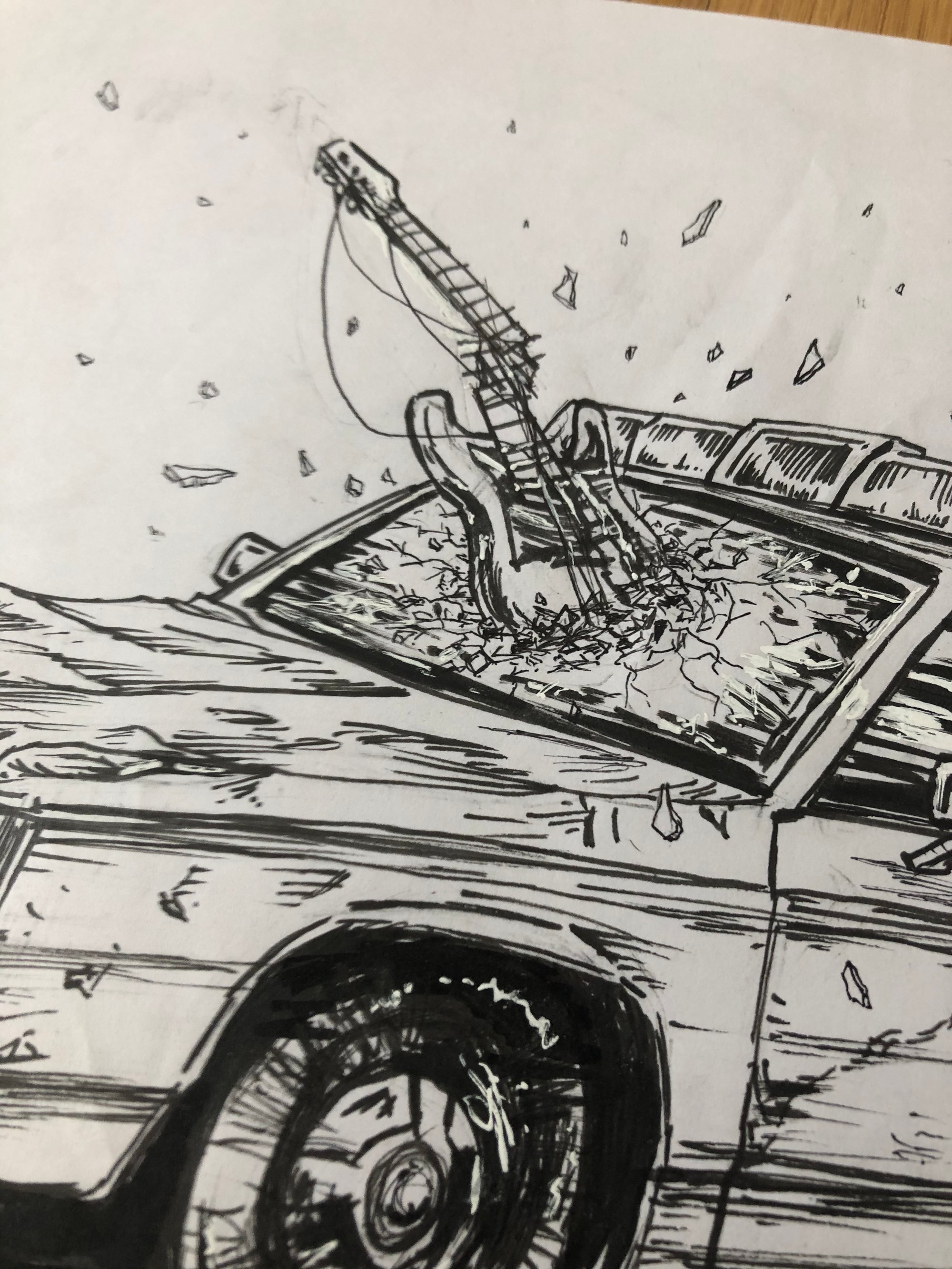 Original pen, pencil and whiteout illustration on lightwheight marker paper