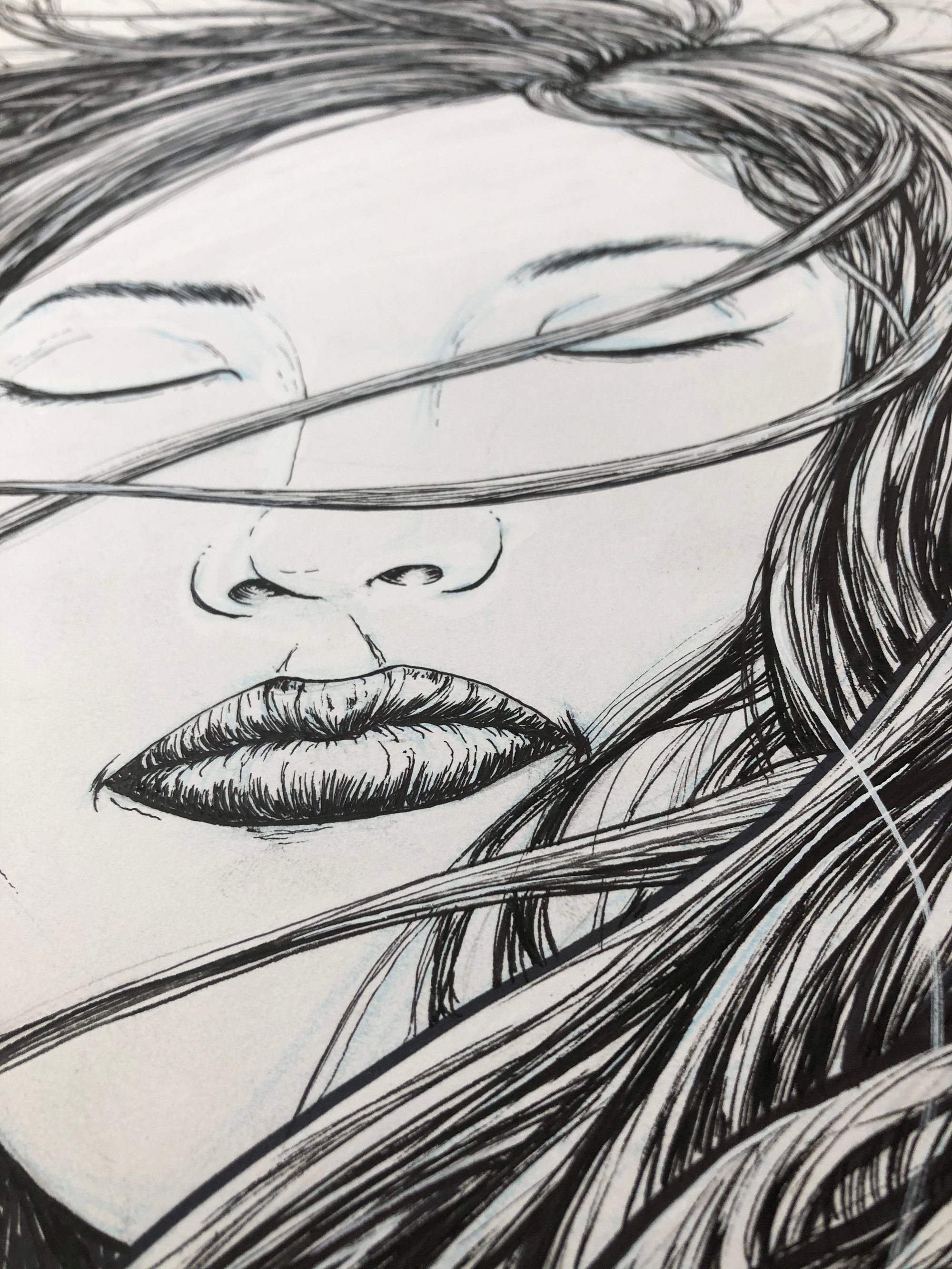 Hair flowing eyes closed