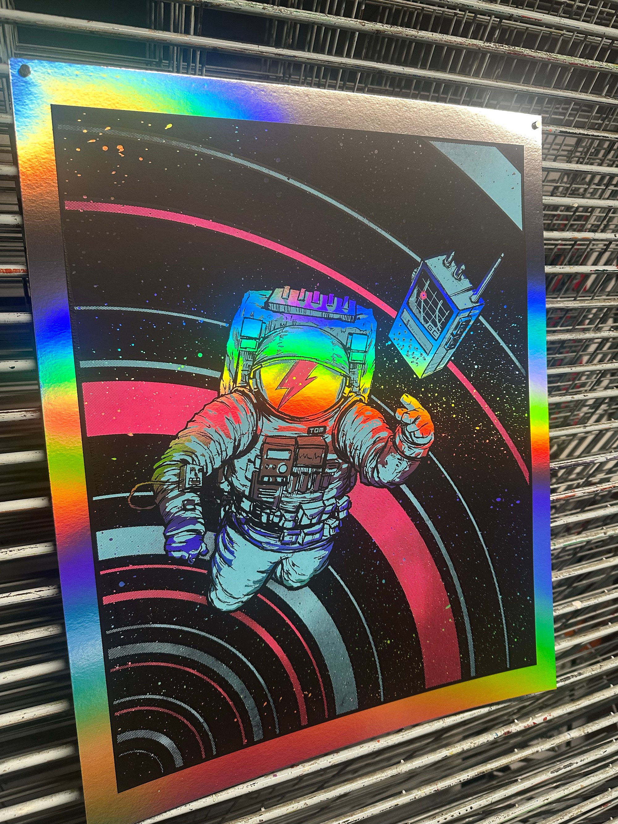 16x20 3 color screen print on holographic foil. Limited edition of 20 Signed and numbered