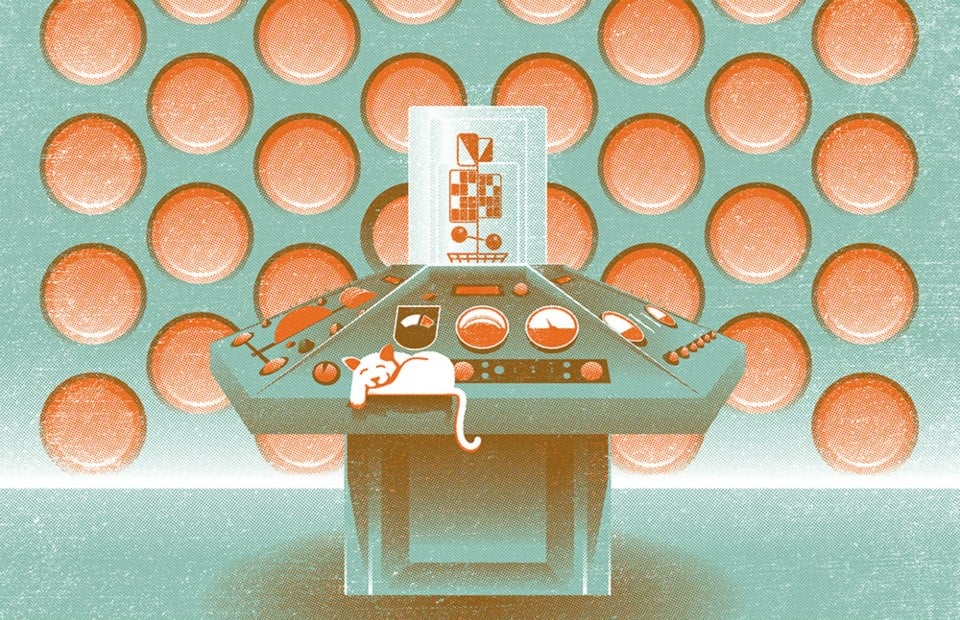 17x11 2 color screenprint inspired by my love of Doctor Who, their fantastic set design, and my love of cats.