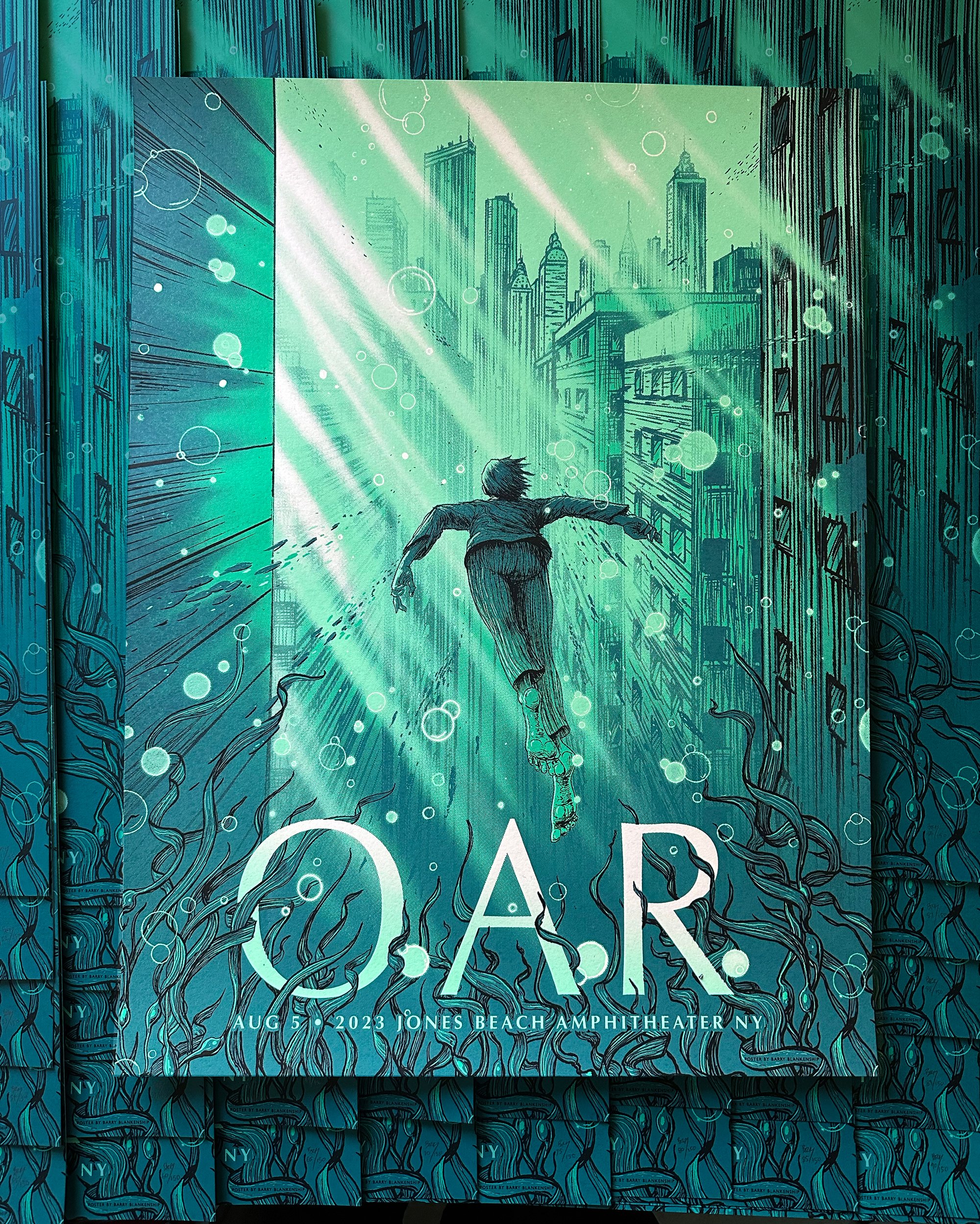 Officially commissioned posters for O.A.R. Aug 5. 2023 Jones Beach Amphitheater NY 18x24 4 Color Hand pulled Screen Print Ap copies Signed and numbered edition.